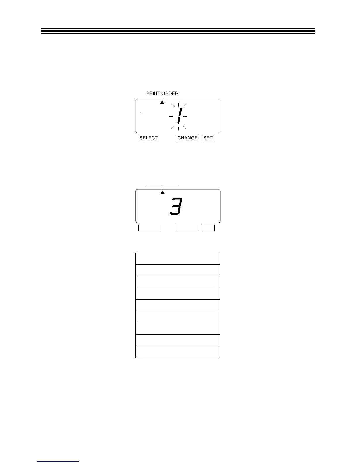 1. Press SELECT until the S is under the "PRINT ORDER" mark.