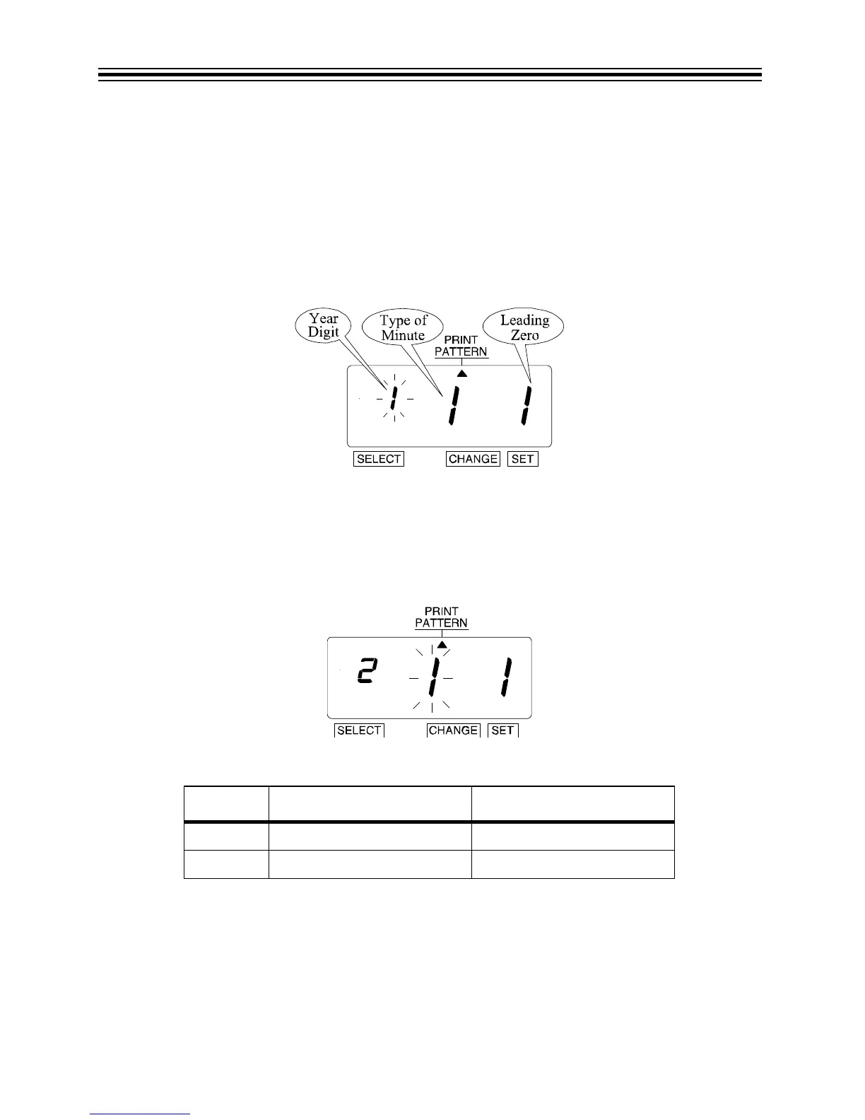 1. Press SELECT until the S is under the "PRINT PATTERN" mark.