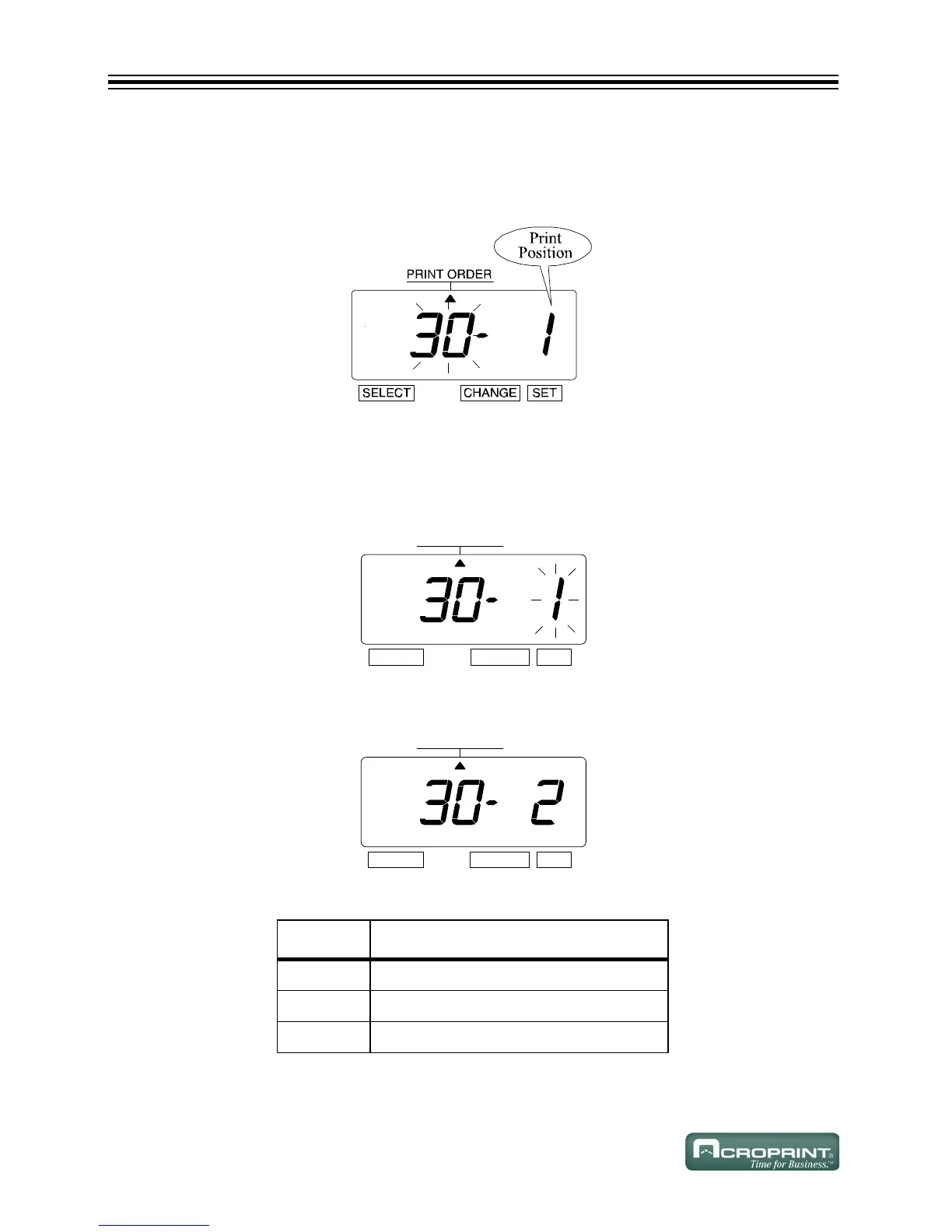 2. "Print Position" appears next to the flashing digit "Print Order".