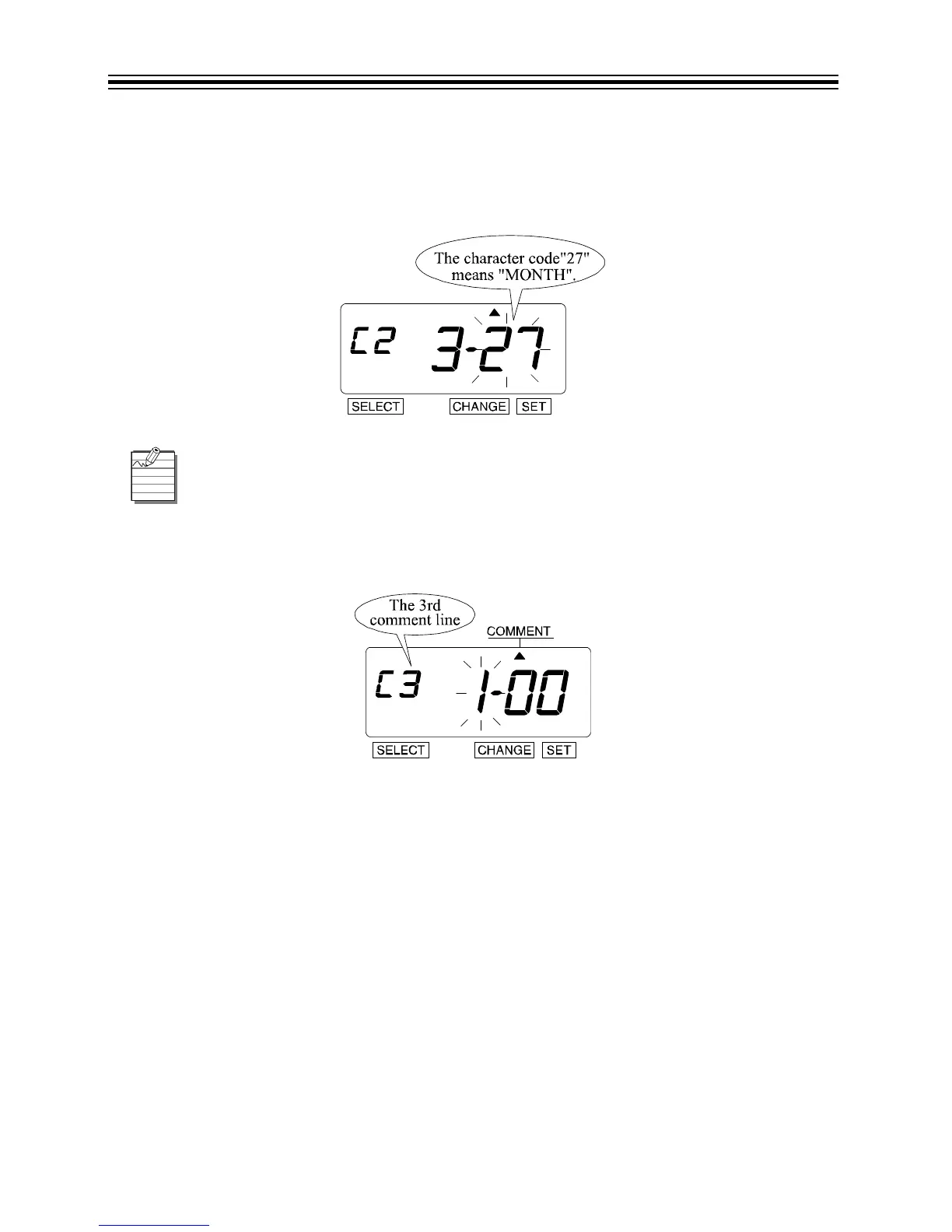 1. In this example, the 3rd character is "MONTH". Press CHANGE until the Character Code is