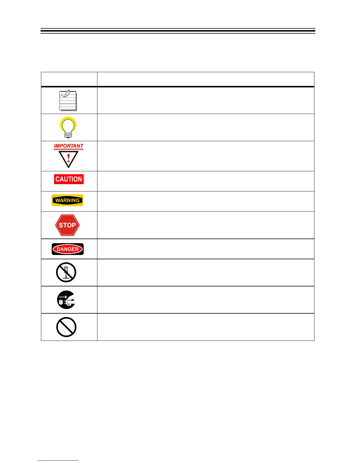 Alerts you not to disassemble or modify the unit.