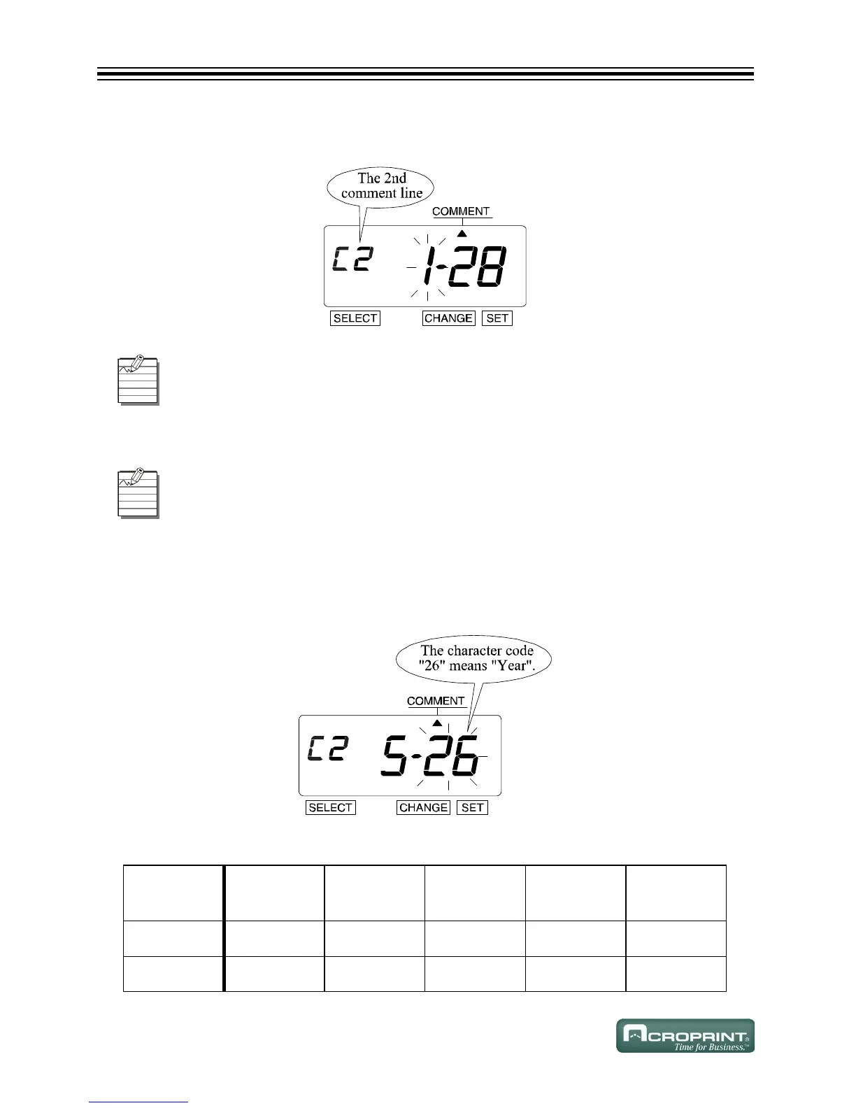 1. Press SET 4 times. The 2nd Comment Line displays.