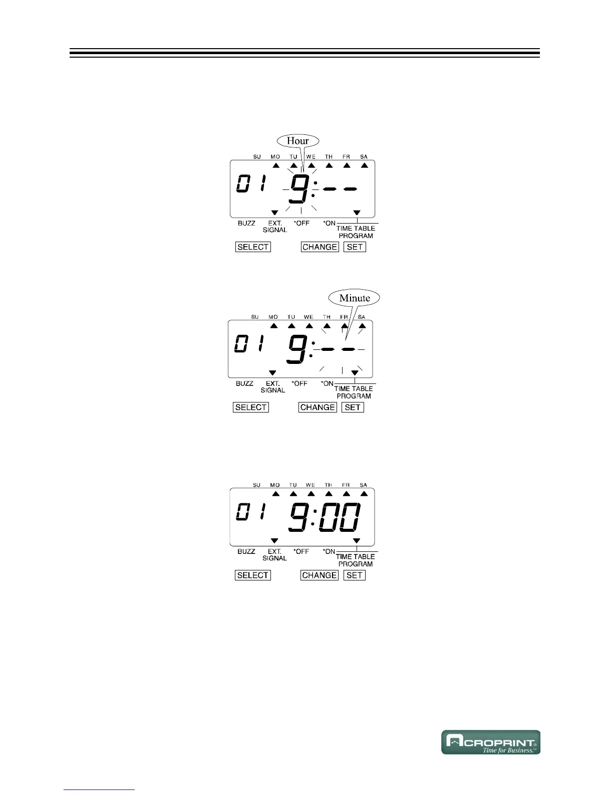1. In this example, press CHANGE until the hour is "9".