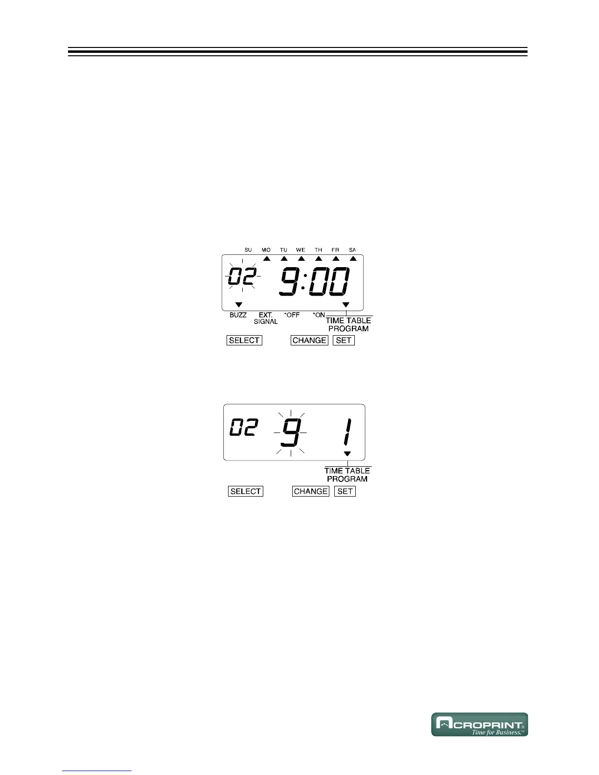 1. Press SELECT until the T is above the "TIME TABLE PROGRAM" mark.