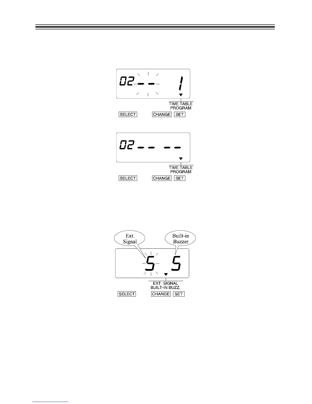 1. Press SELECT until the T is above the "EXT. SIGNAL/BUILT-IN BUZZ" mark.