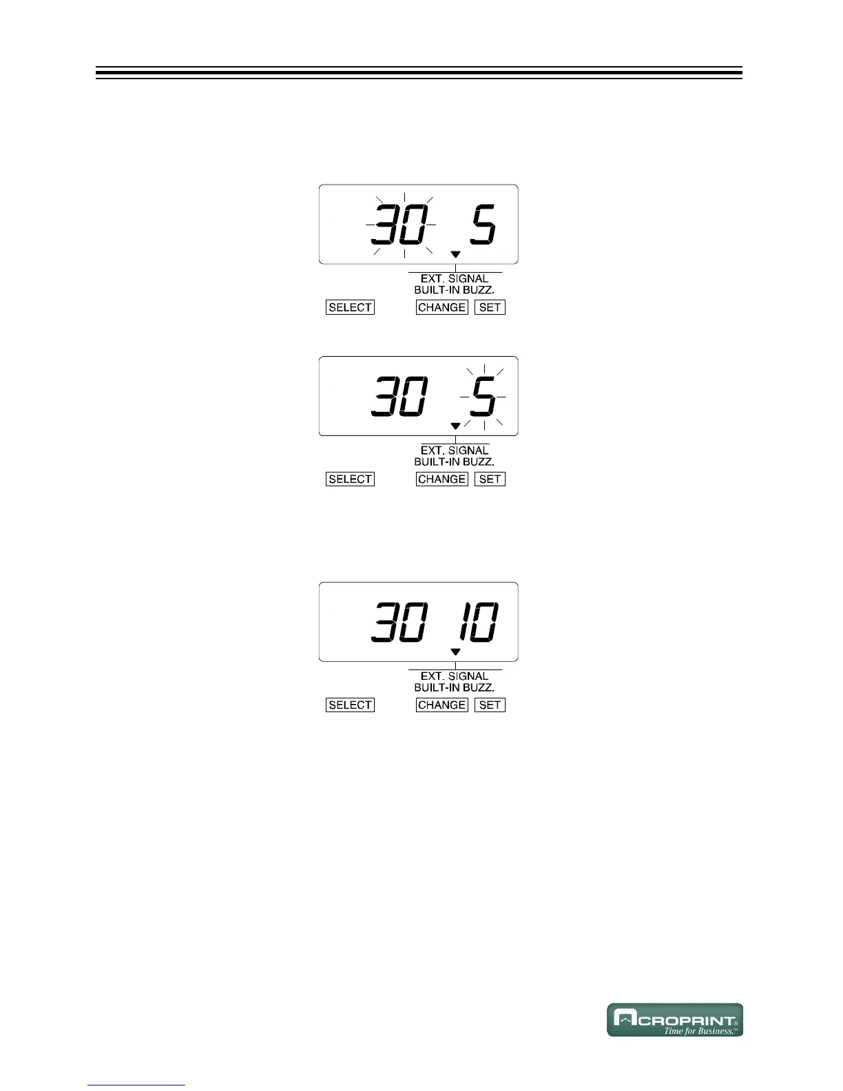 1. In the example, press CHANGE until the option is "30".