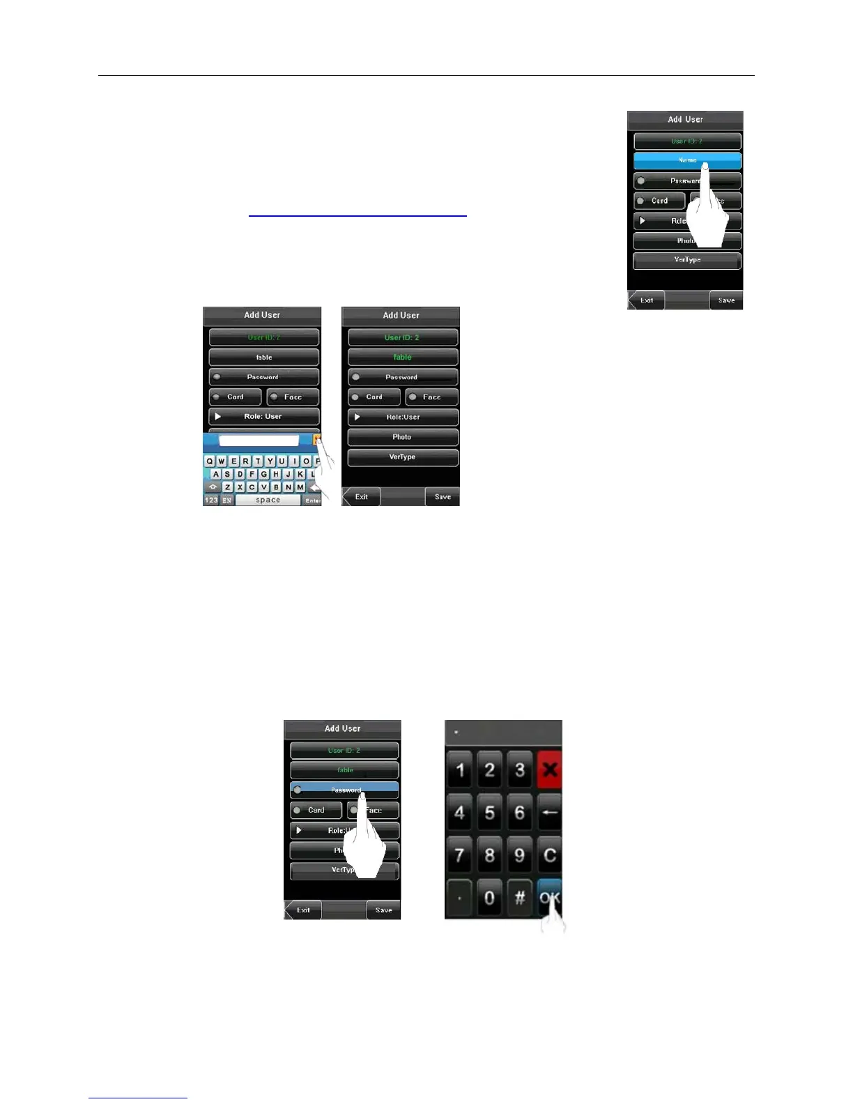 • Press [Name] on the Add User screen to display the name input screen with keyboard.