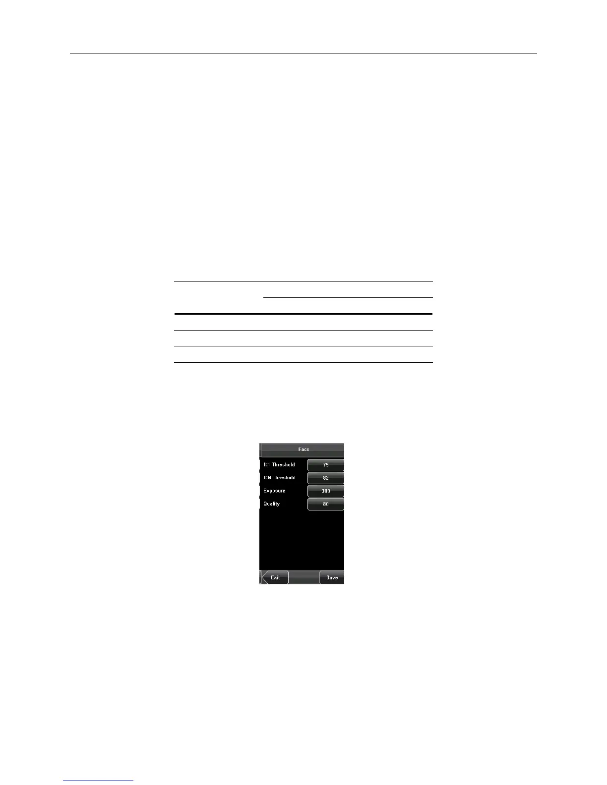 • 1: N Threshold: Used to set the threshold of matching between the current face and the face template enrolled in