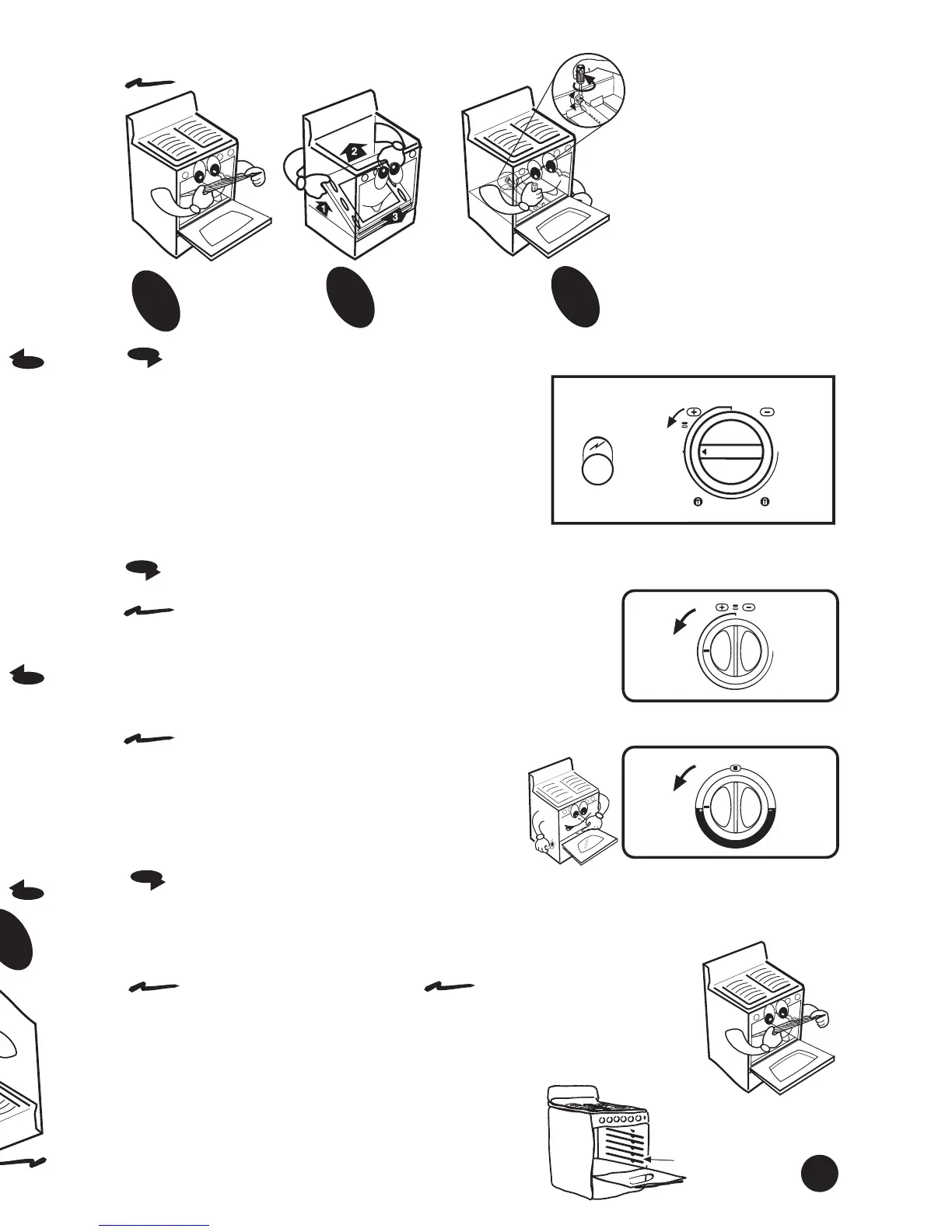y gire 1/4 de vuelta la perilla del horno.