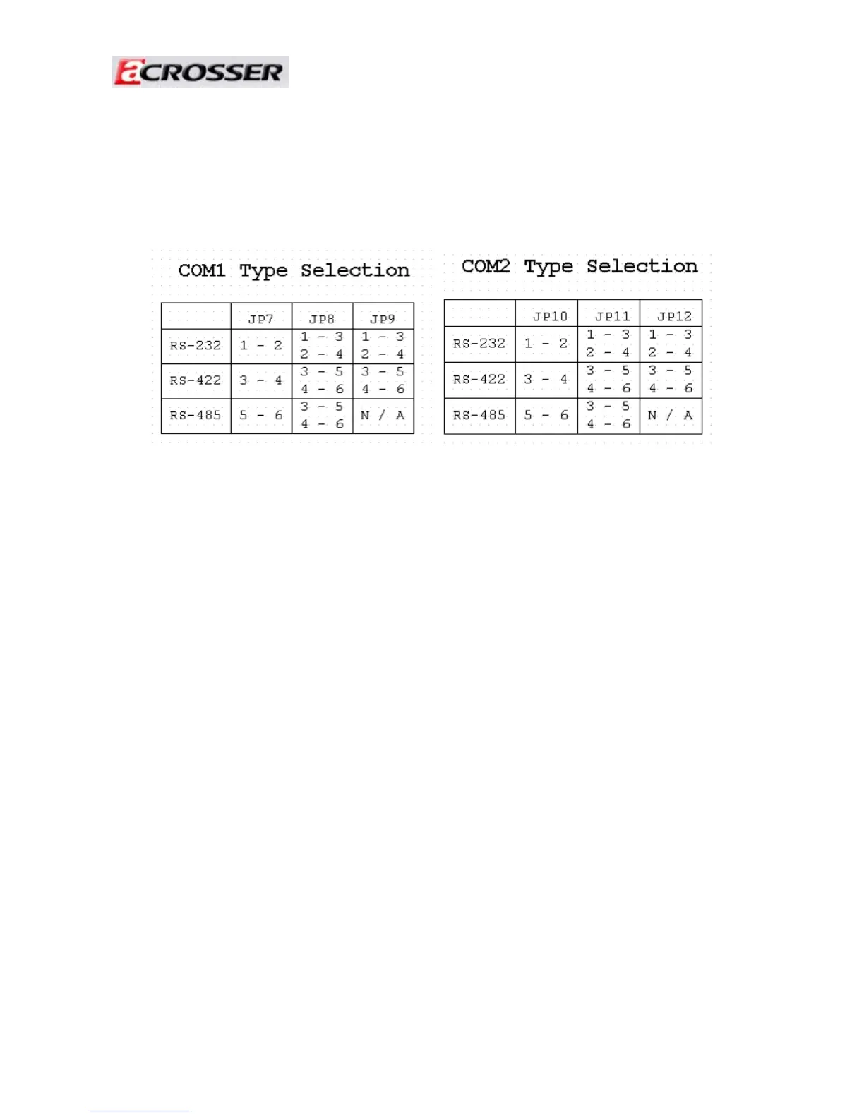 JP7,JP8,JP9 setting to COM1