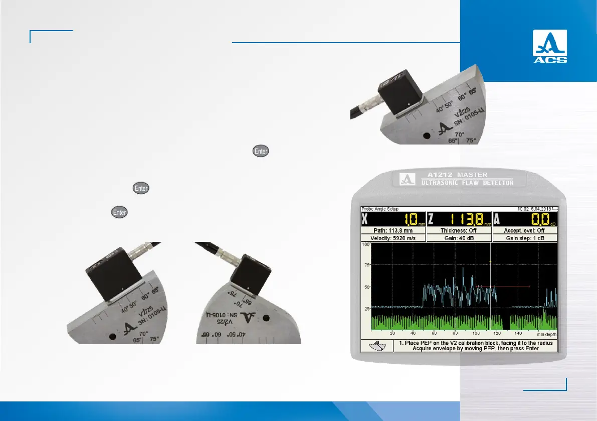 - to determine the delay in the transducer’s prism, scan the radial part (R50) of the V2/25