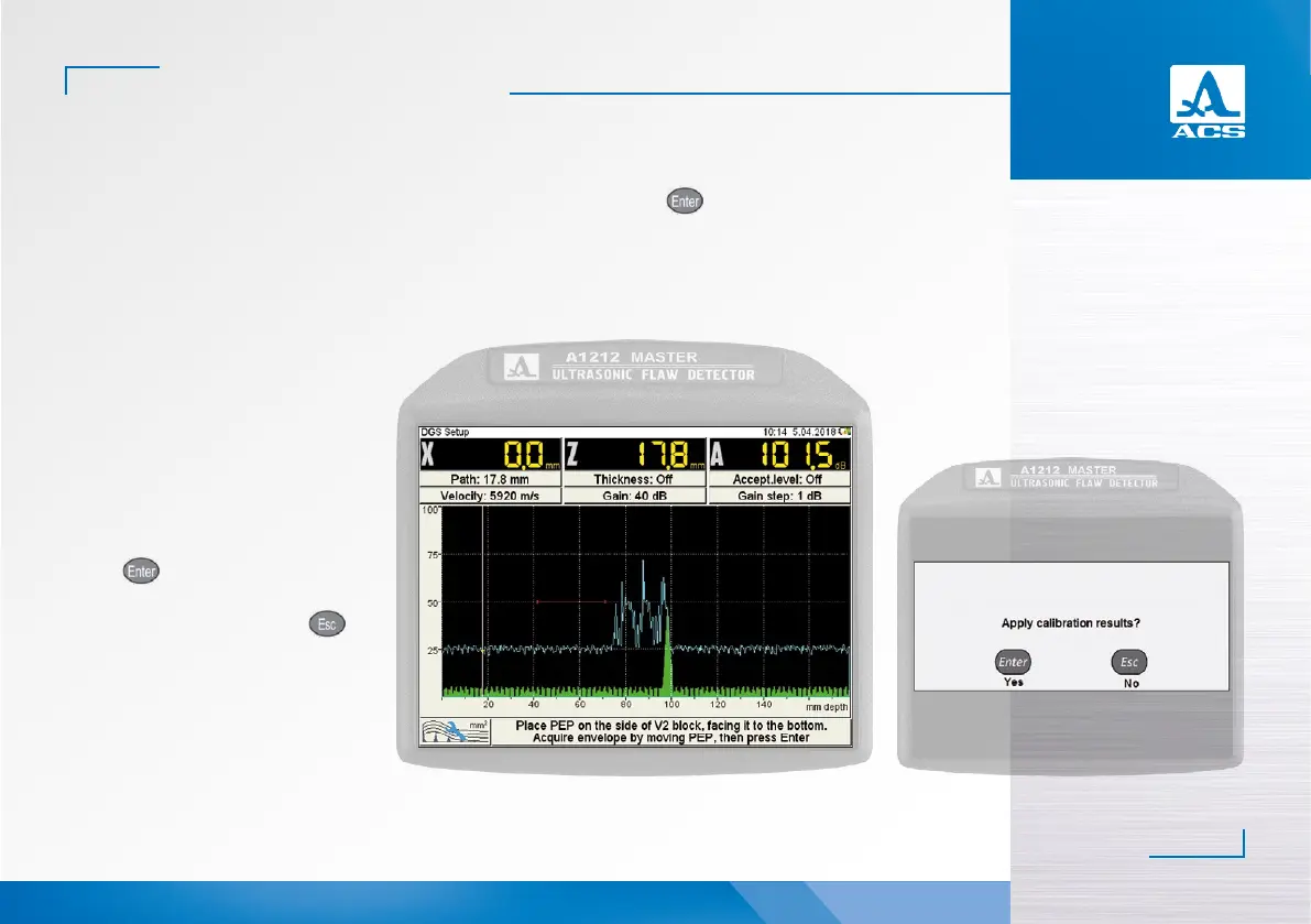 - move the PT with reference to the guide line and generate the time envelope of the signal from the hole. Adjust am-