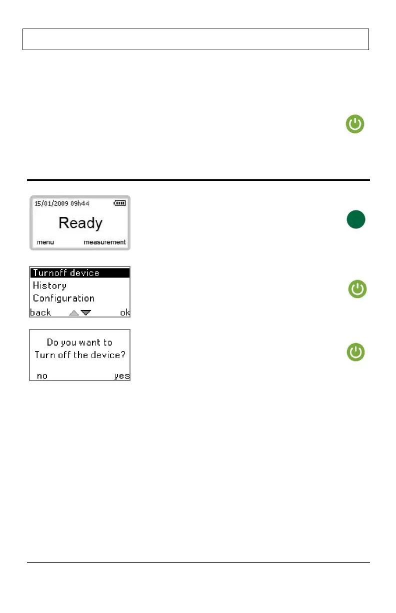 The instrument displays READY and the previous measurement alternately.