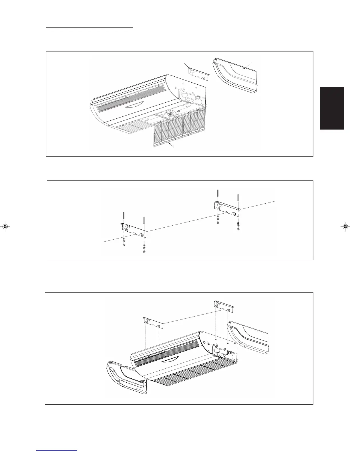 Retirez la grille d’admission d’air, le panneau latéral et la ferrure de suspension de l’unité. Référez-vous à la Fig. F.