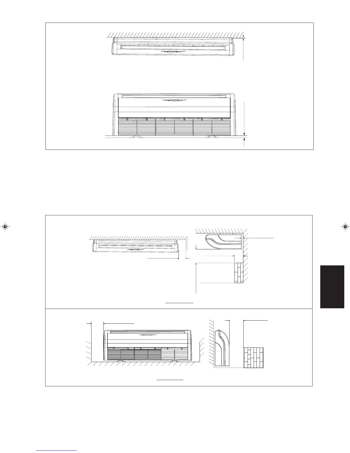 Внутренний модуль должен быть установлен так, чтобы не было столкновения выпуска холодного с возвращающимся потоком