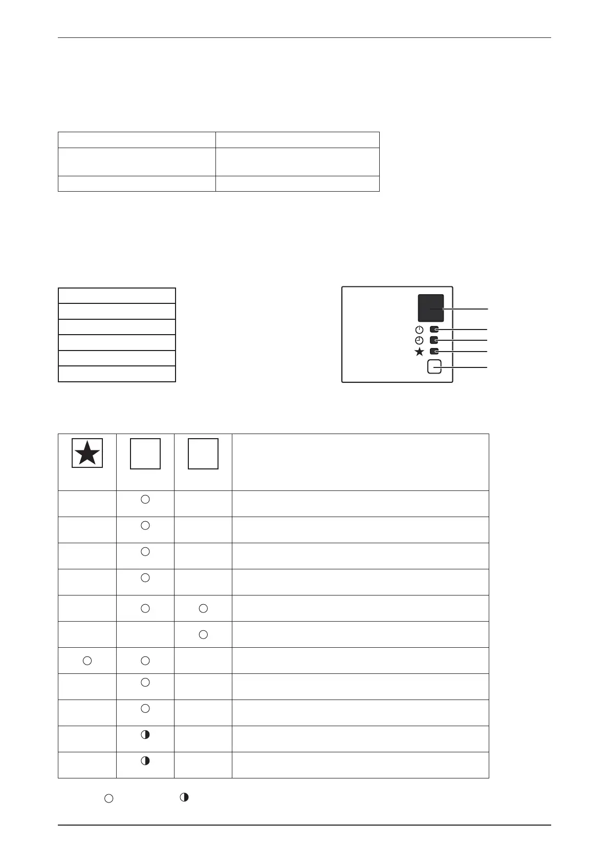 The table shows the LED indicator lights for the air conditioner unit under normal operation and fault conditions.