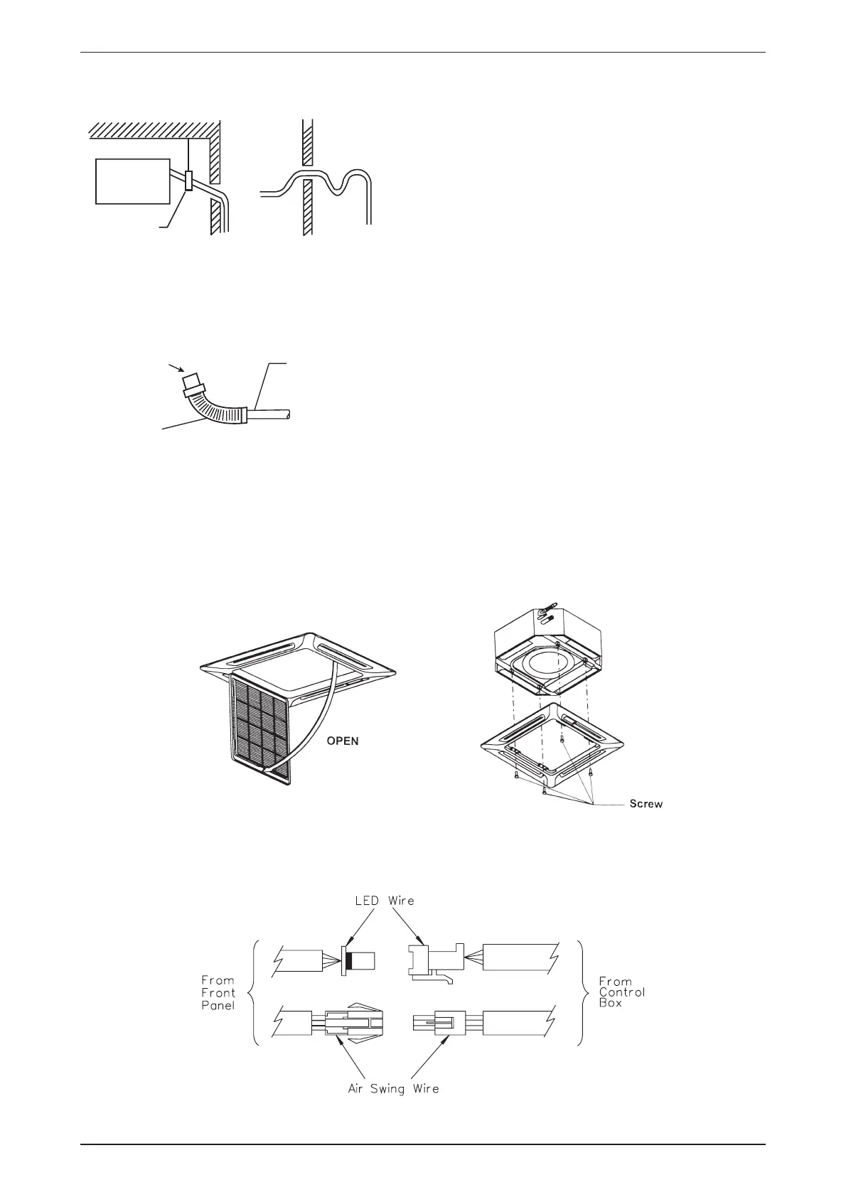 Connect the LED wire and air swing wire to the indoor unit (Optional).