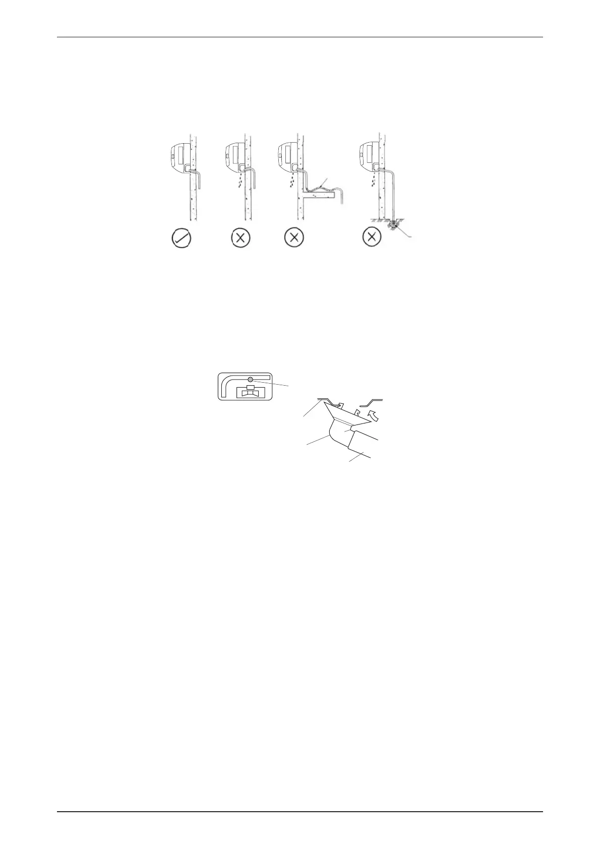 The indoor drain pipe must be downward gradient for smooth drainage. Avoid situation as shown in fi gure