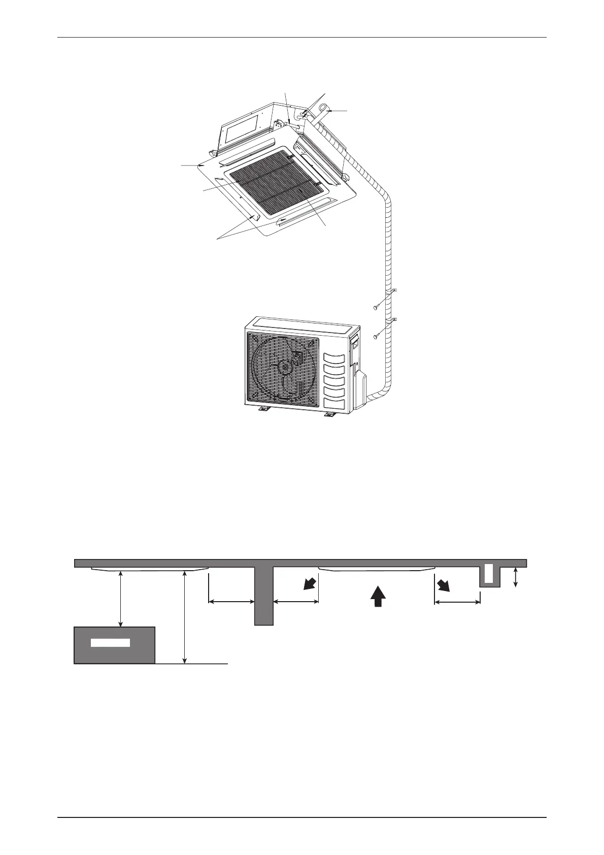 The installation place must be strong enough to support a load of 4 times the indoor unit weight to avoid