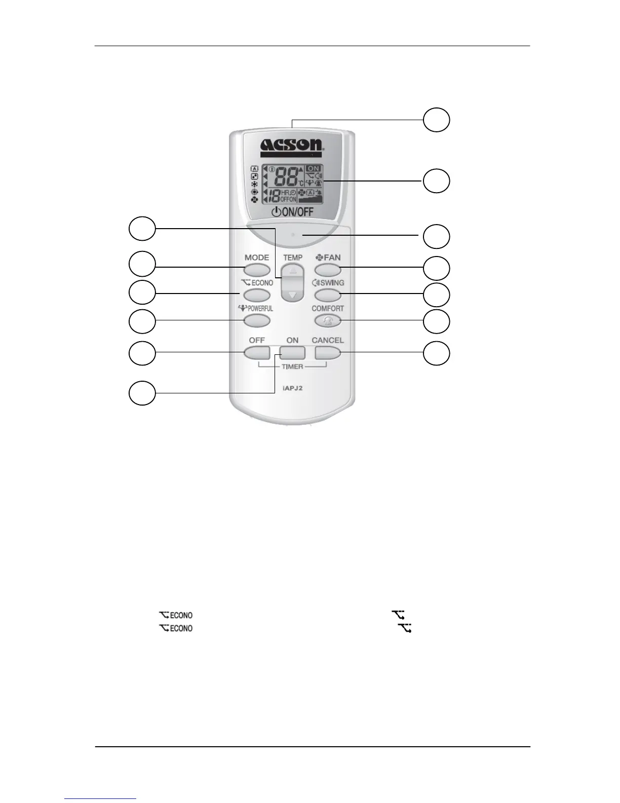 Press button to start ECONO operation. The symbol is displayed on the LCD.