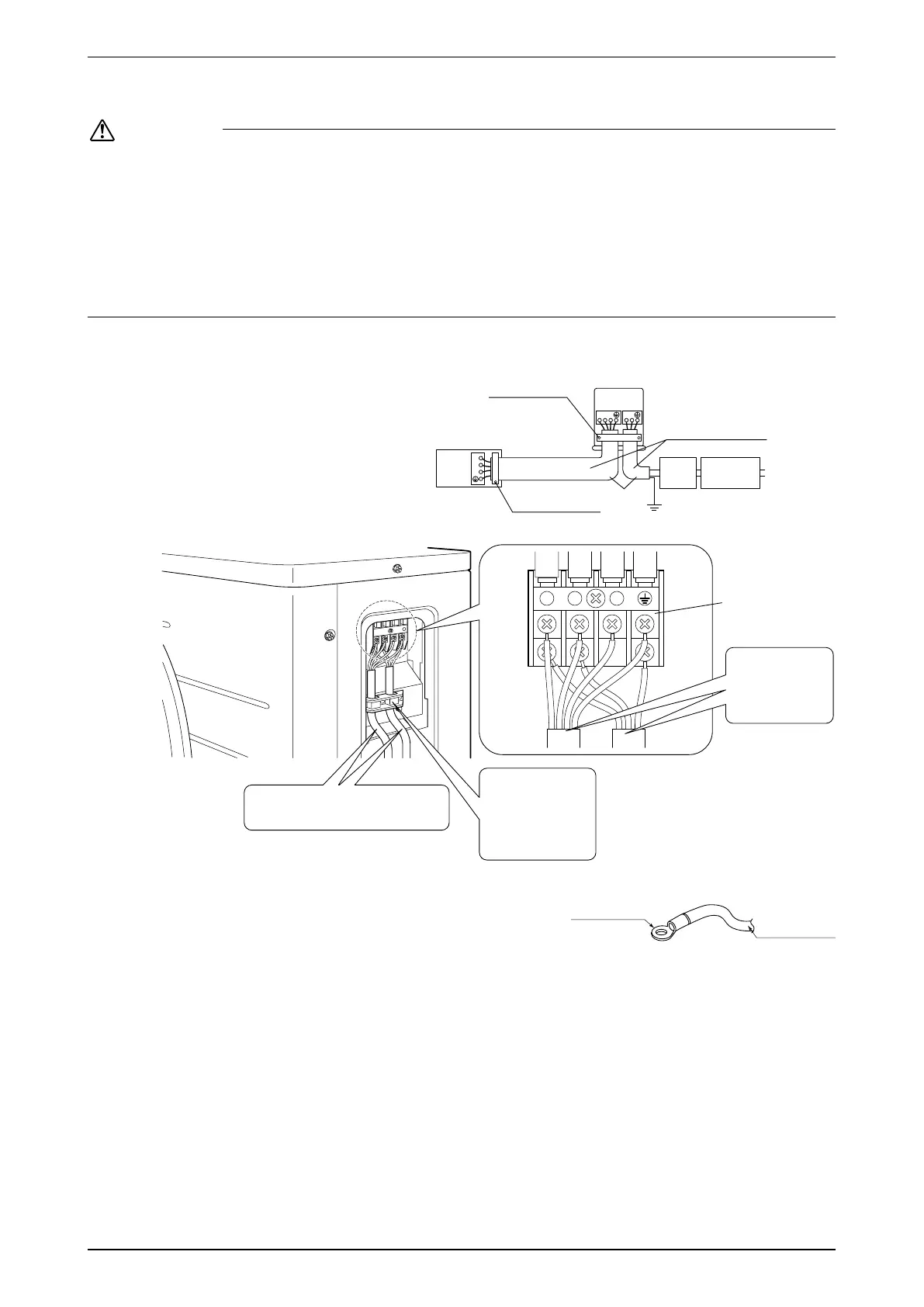 Be sure to install an earth leakage breaker. (One that can handle higher harmonics.) (This unit uses an