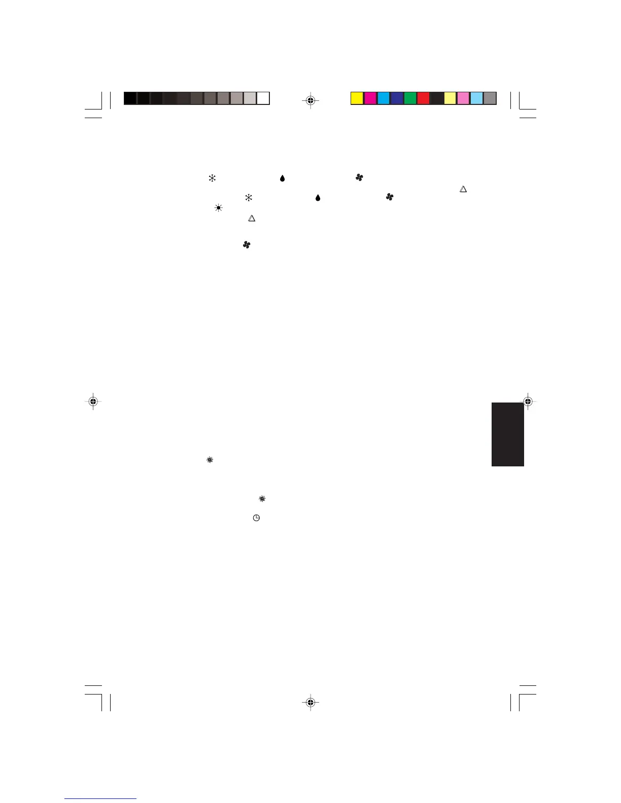 (AUTO), COOL ( ) (FRIO), DRY ( ) (SECO), FAN ( ) (VENTILACIÓN)