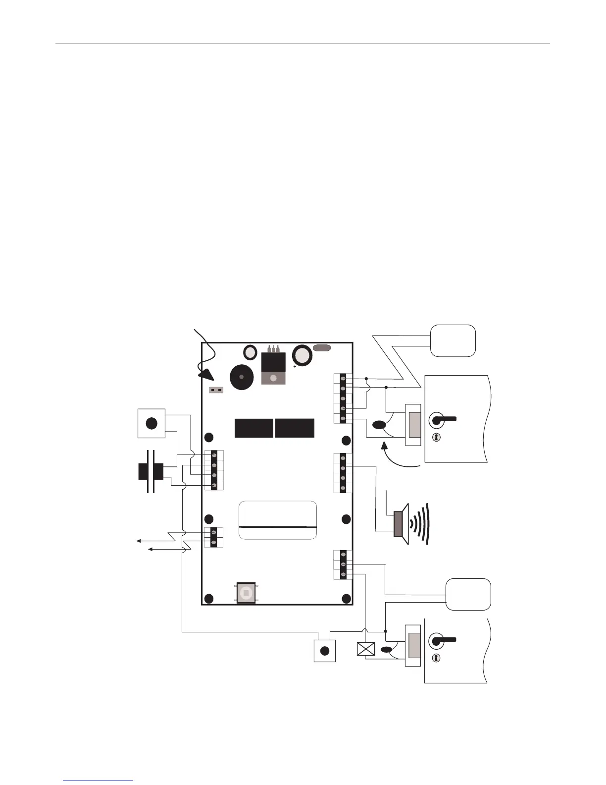 The ACT 10 may be used to control 2 doors as illustrated in the diagram above