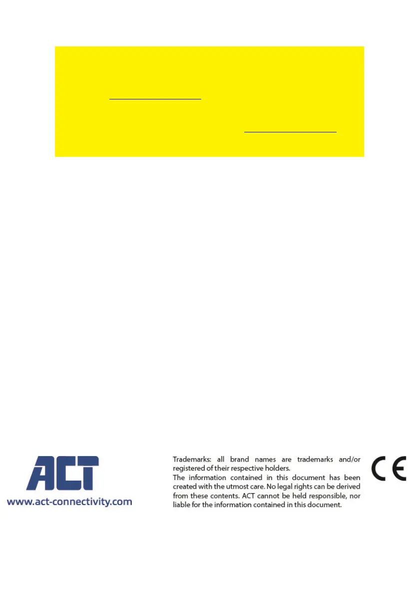Vanlige spørsmål (FAQ) Se støtte på nettstedet vårt www.act-connectivity.com og se