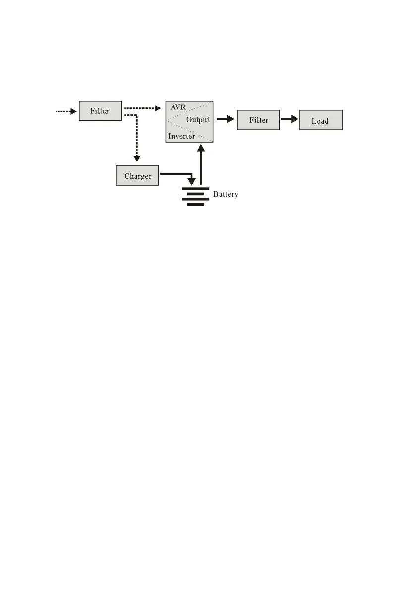 inverterja, pri tem pa bo napajanje prešlo filter, zagotovljeno bo napajanje opreme in s