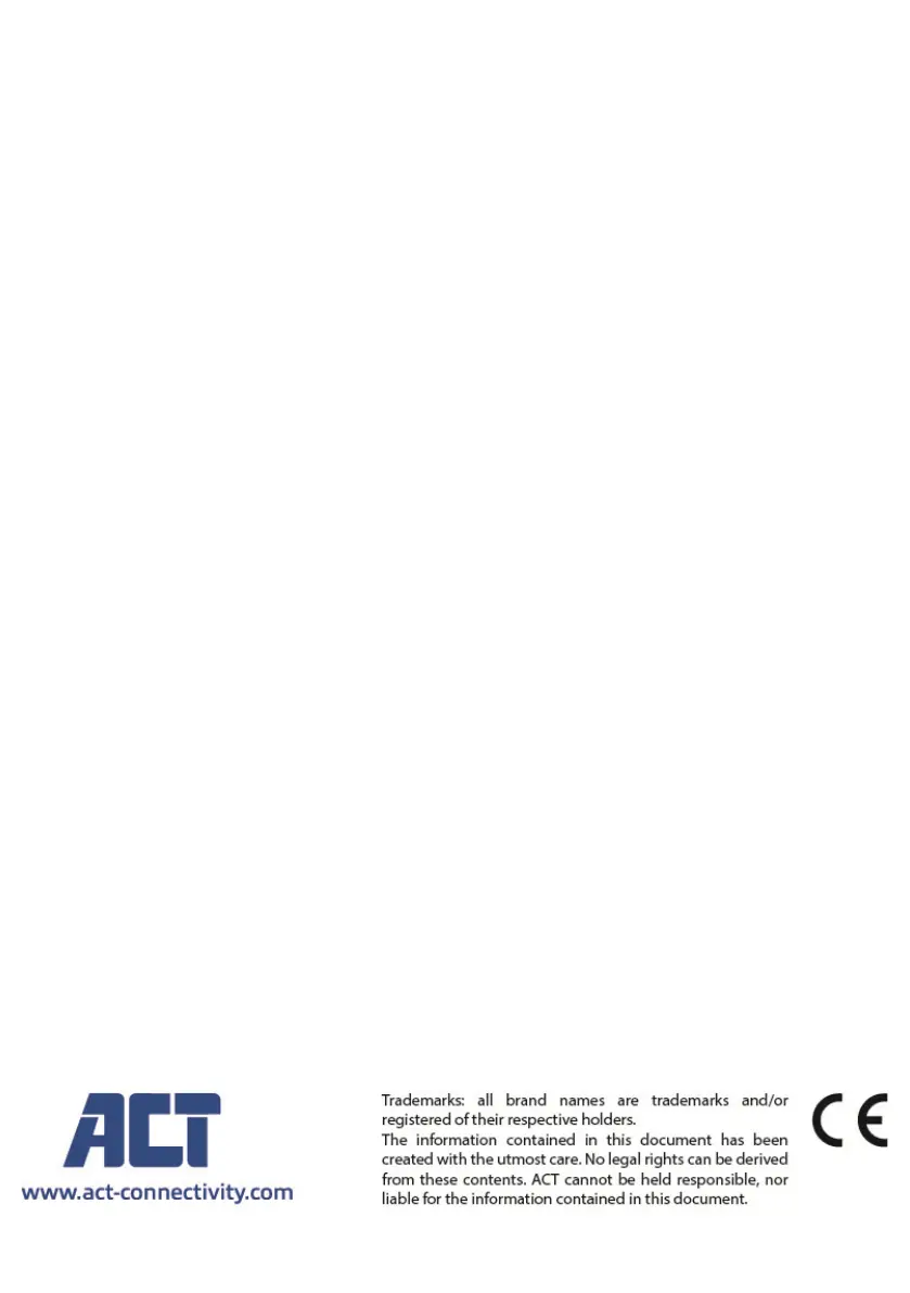 La garantie d’ACT s’applique à tous les produits d’ACT. Après achat d'un produit ACT