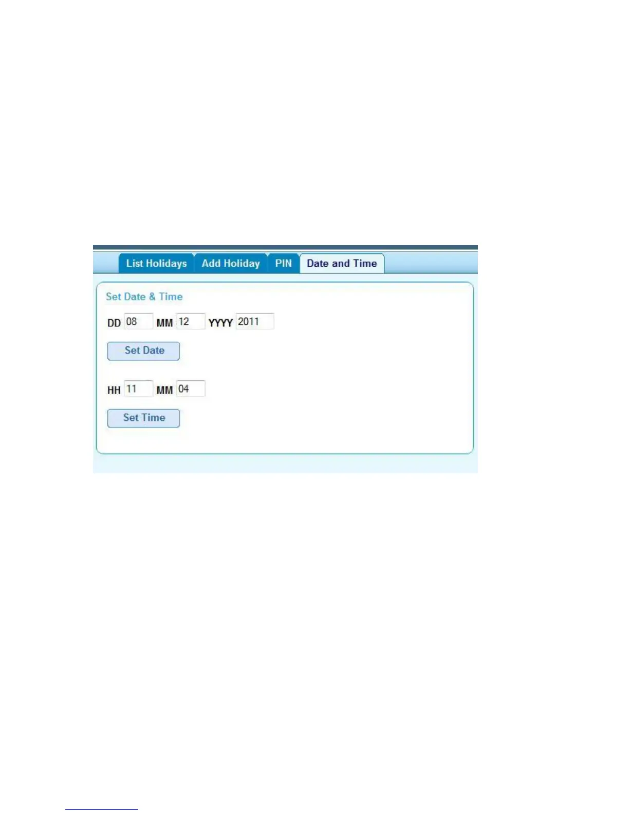 9.4 Set controller Date and Time