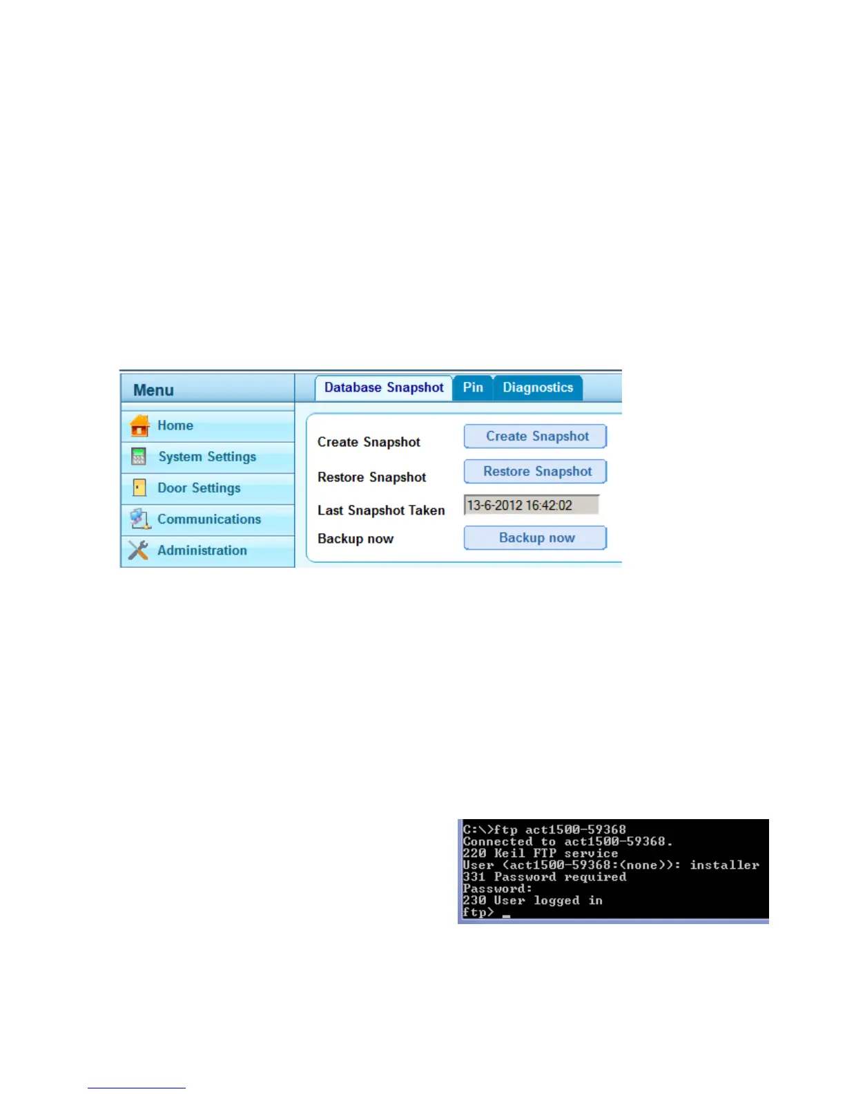 To restore the backup from the PC the installer must use an FTP client. The FTP client