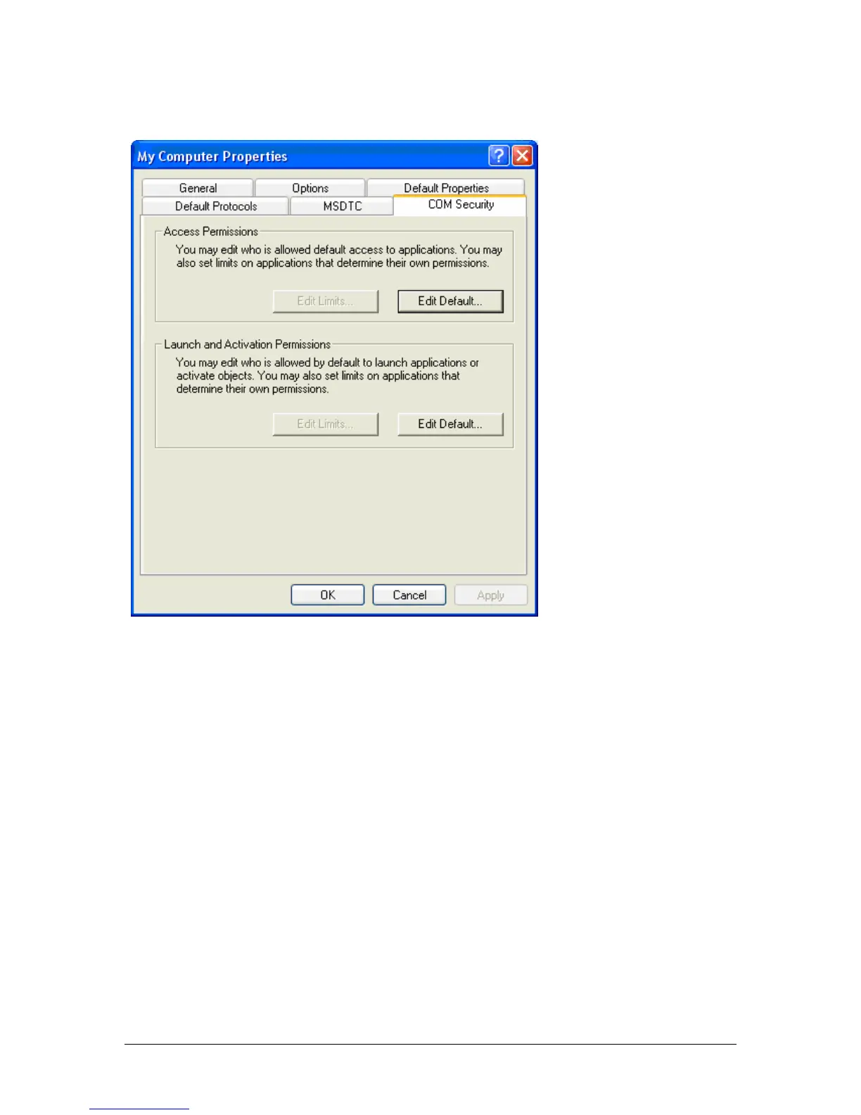 3. From the "COM Security" Tab select "Launch and Activation Permissions".