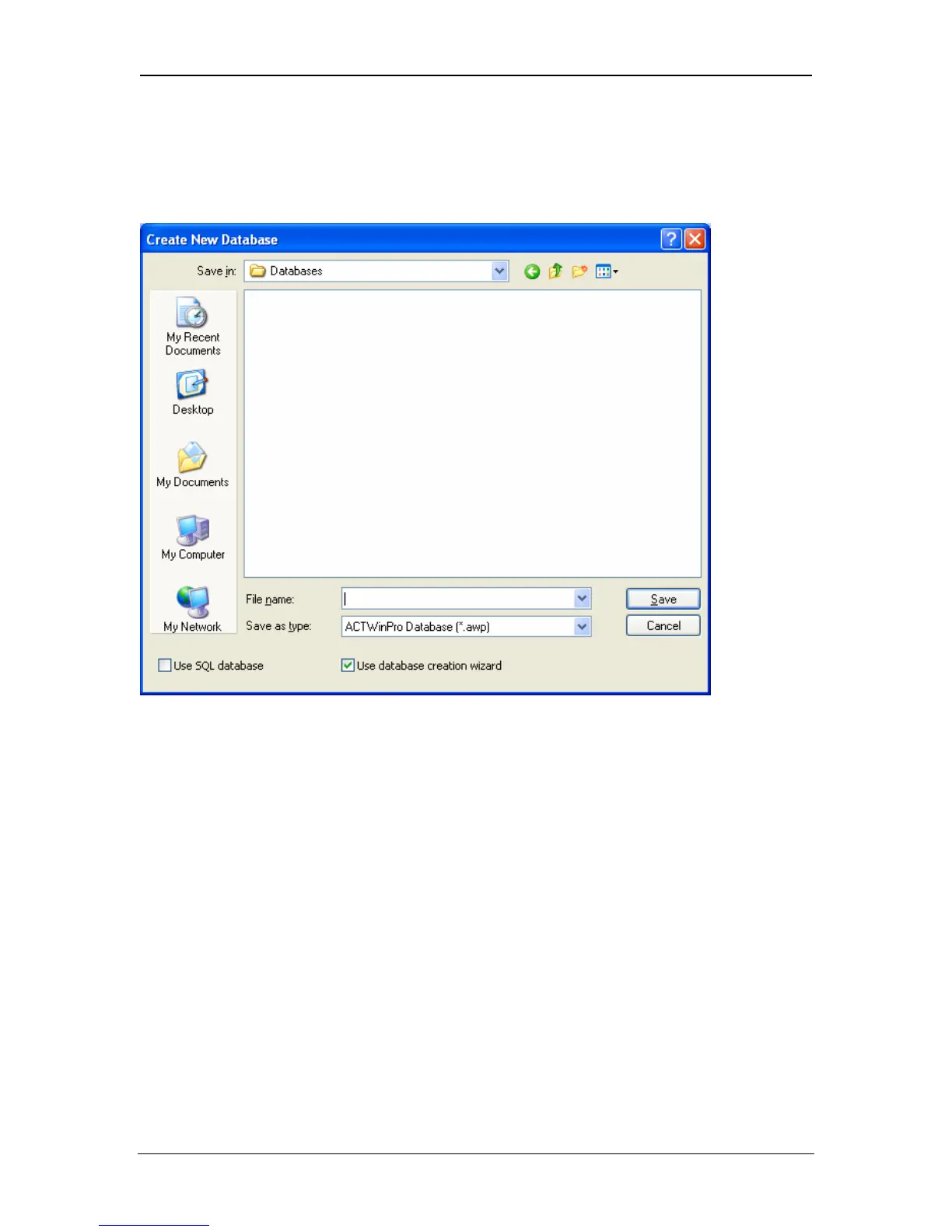 This option allows a new ACTWinPro database to be created. The new database