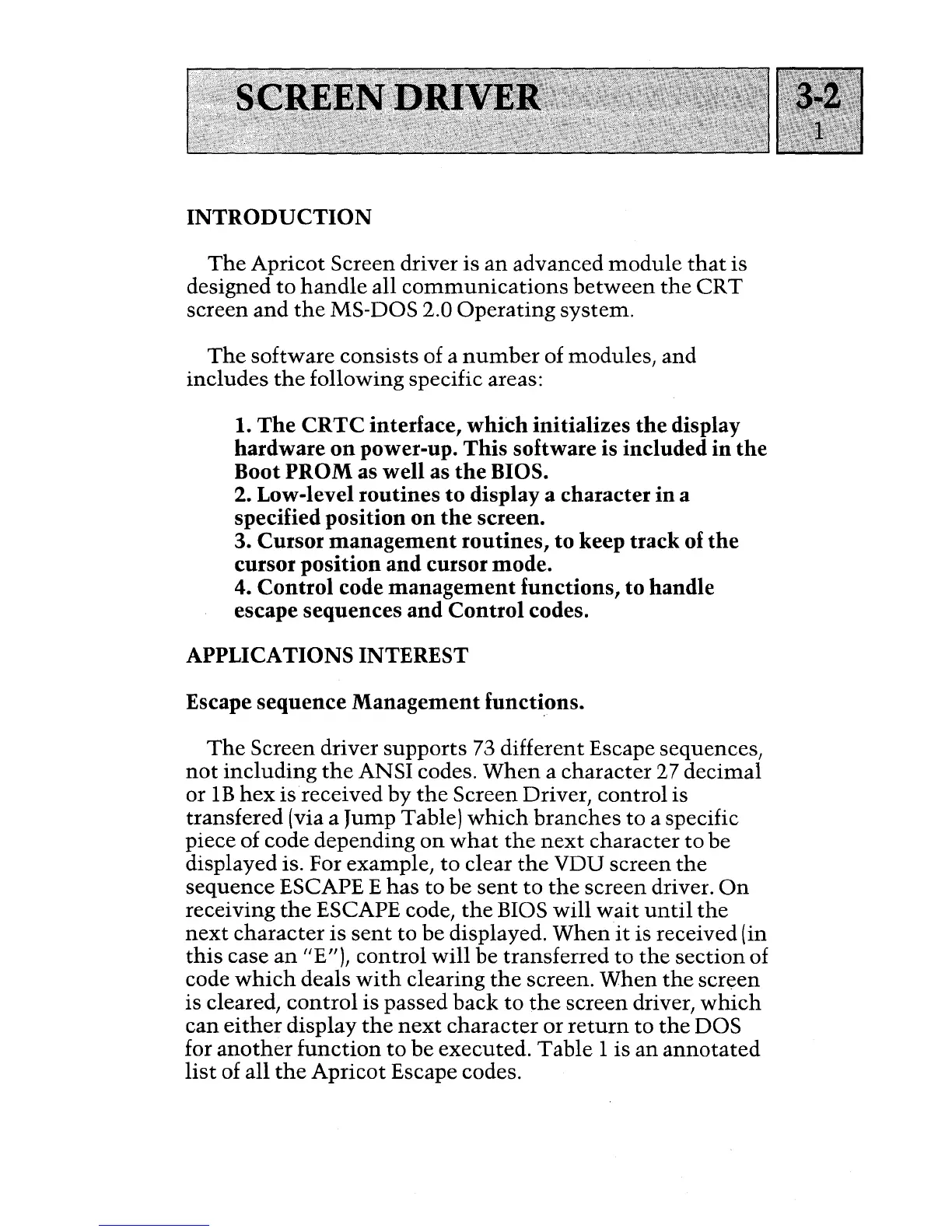 Apricot Screen driver is