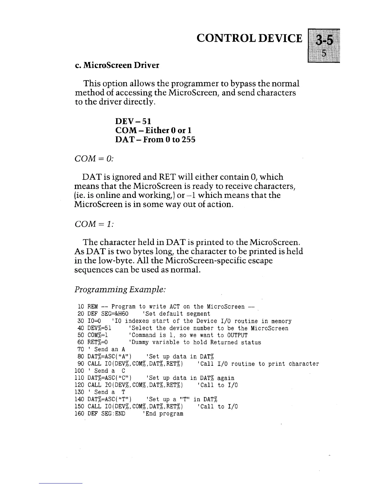 I~(DEV%,COM%,DAT%,RET%)