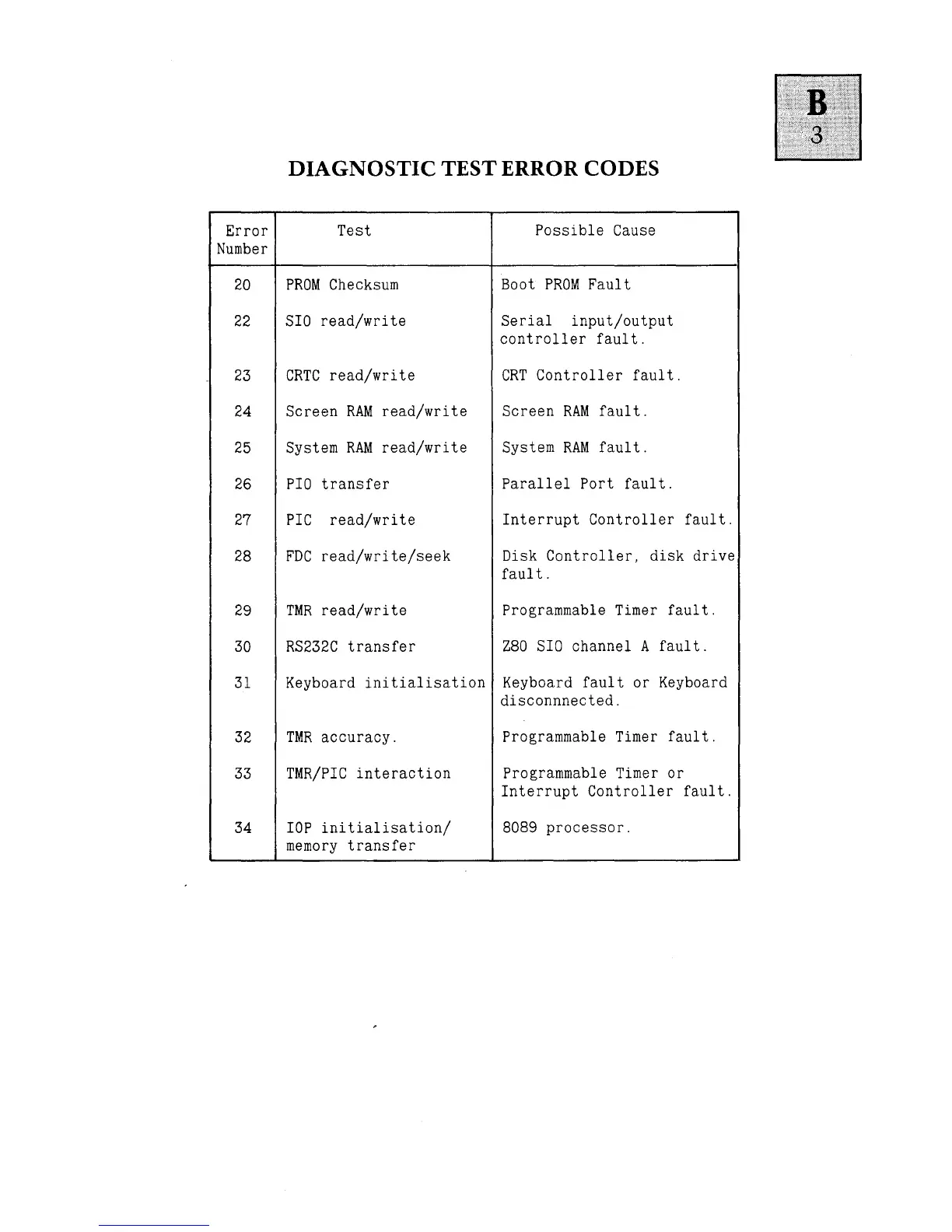 TEST ERROR CODES