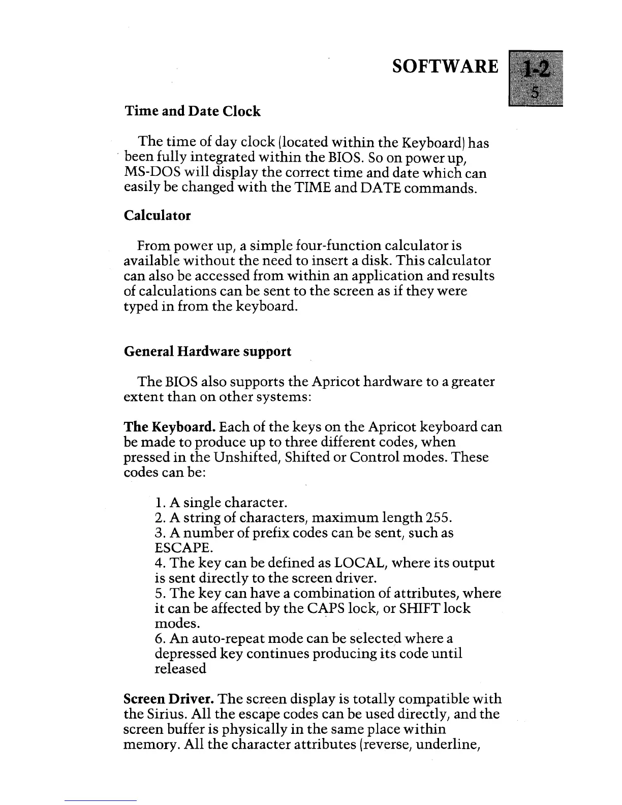 ACT apricot - Time and Date Clock; Calculator; General Hardware Support