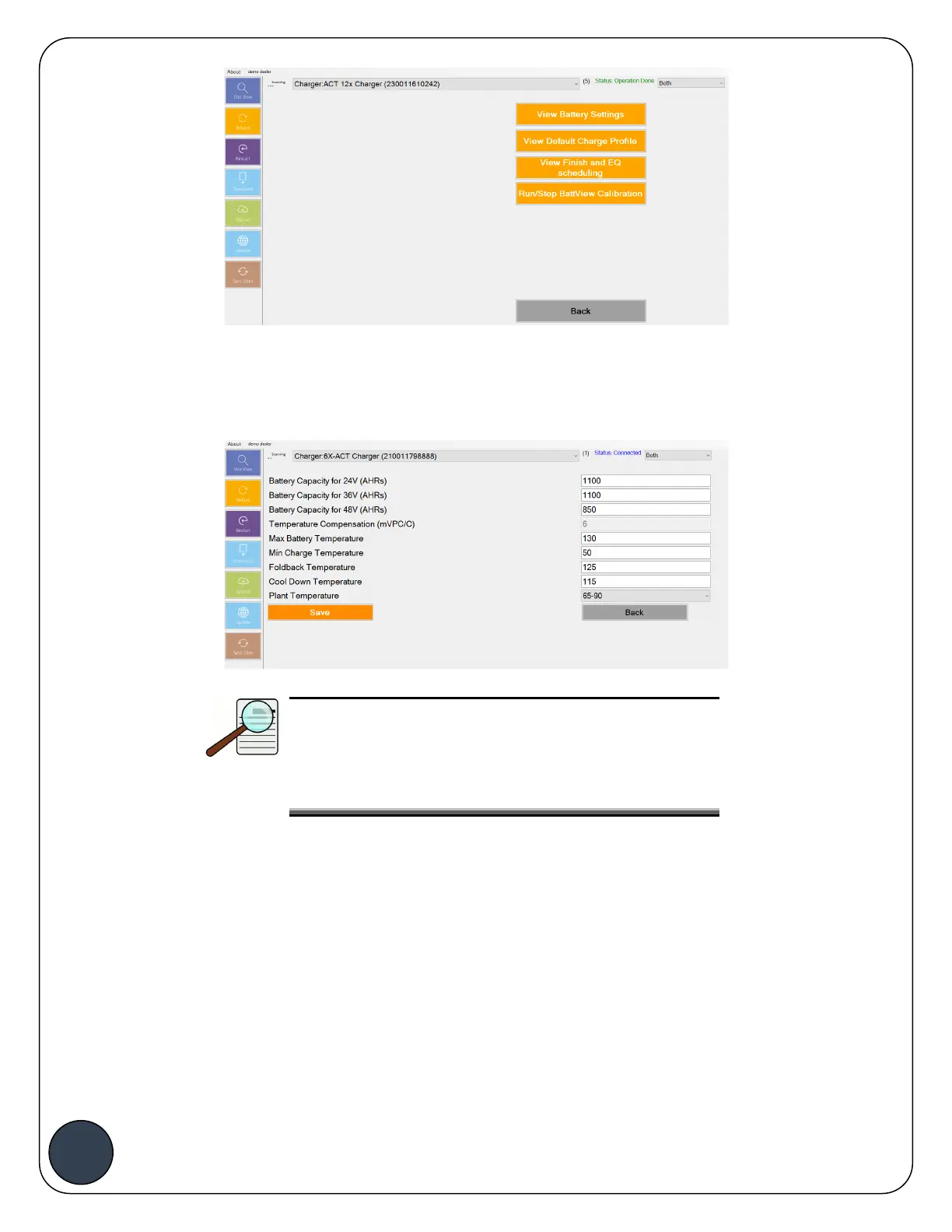 charging profile follows the recommended settings by East Penn. Click on Back to go back