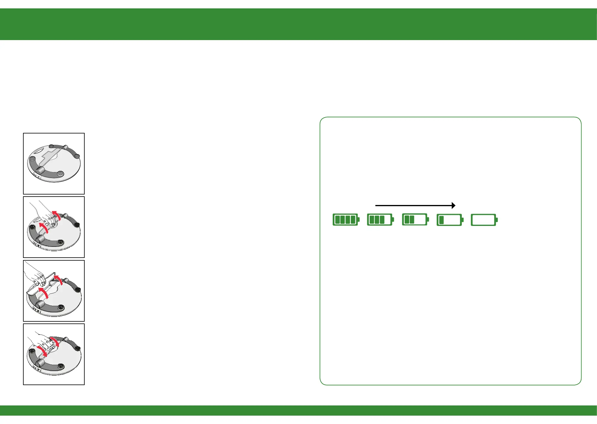 When the device is running from the battery, an indicator will show the