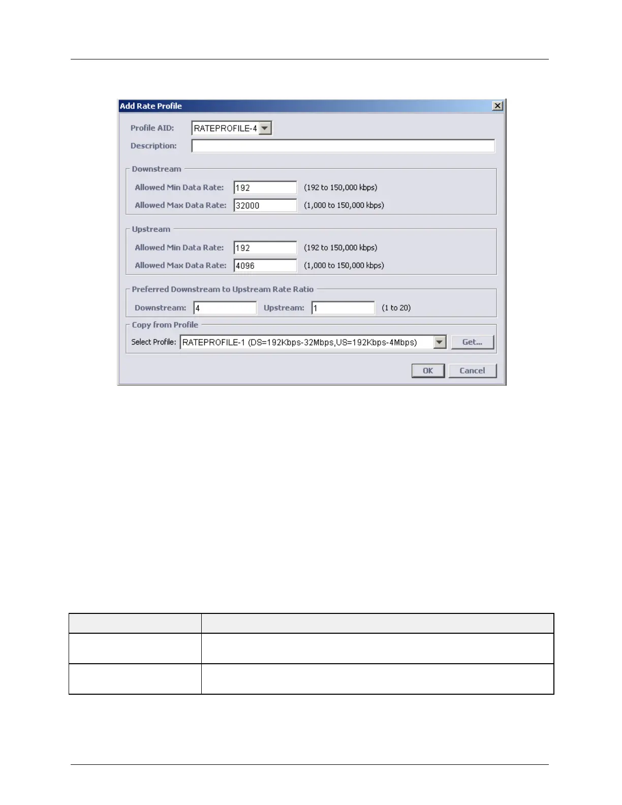 and US values (e.g. DS=64Kbps-32Mbps, US=32Kbps-4Mbps). This description will be