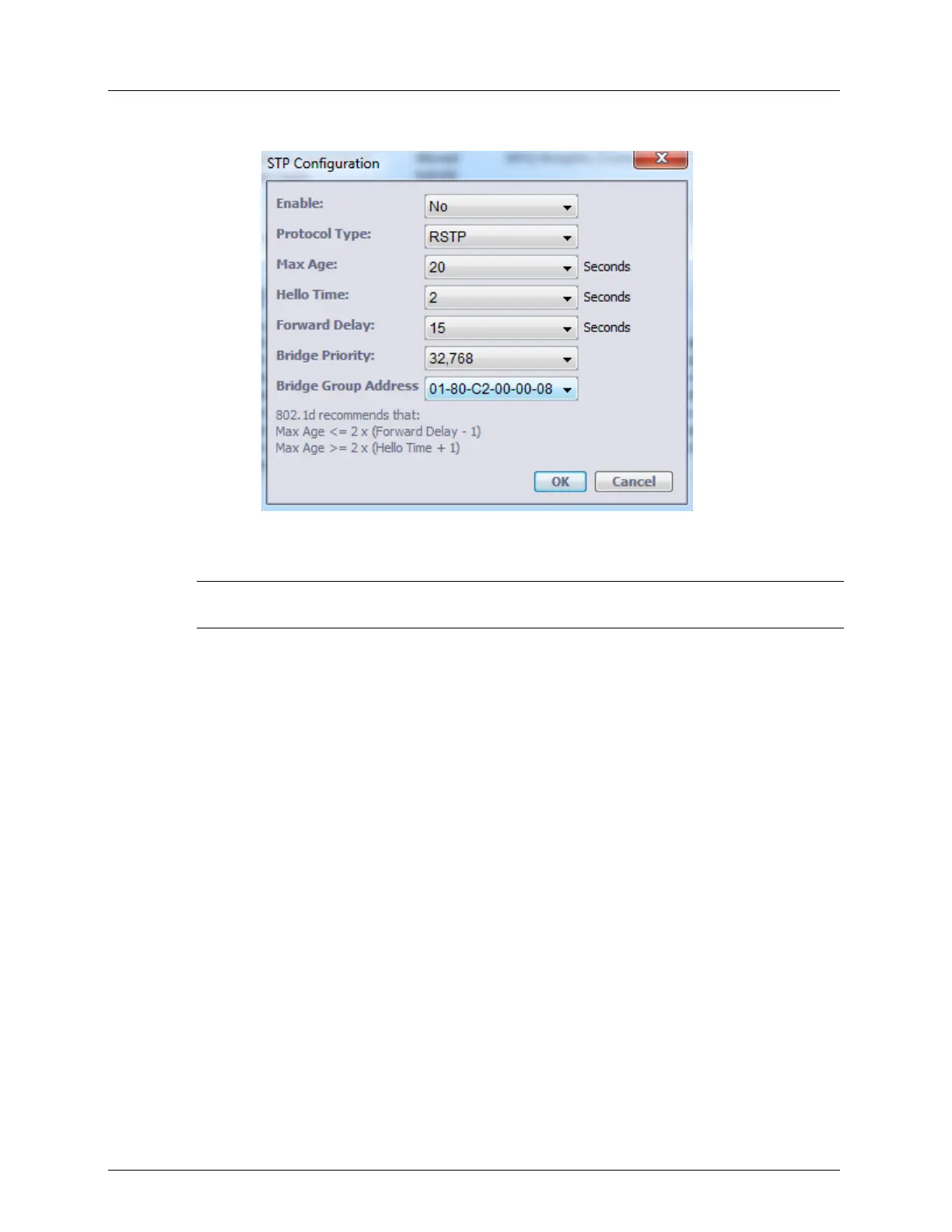 4. Select Bridge Group Address equal to 0x01-80-C2-00-00-08 and Enable STP or RSTP.