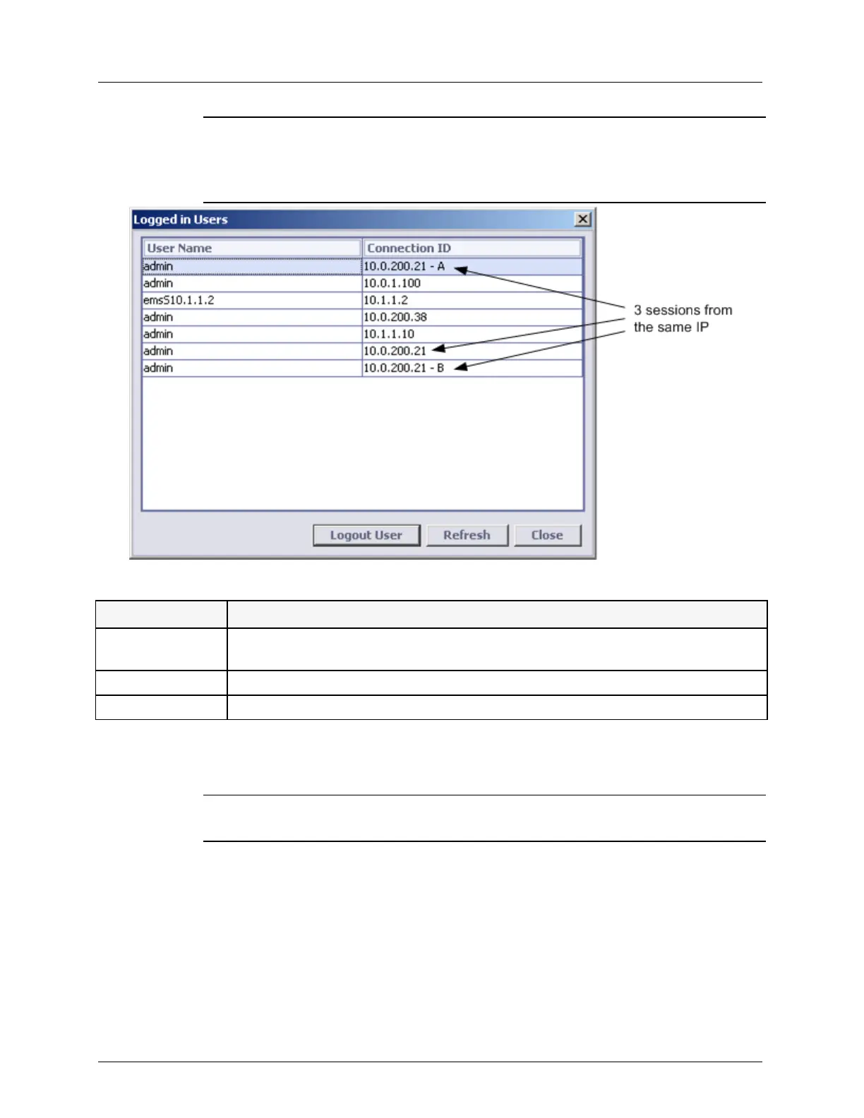 NOTE: Sessions aborted due to Access Control enabling may be listed for a few minutes