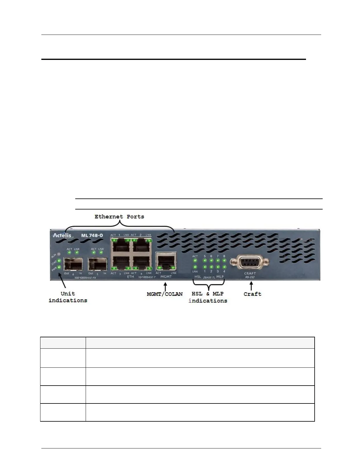 ML700 front panel contains the Ethernet service ports and the management connection ports.