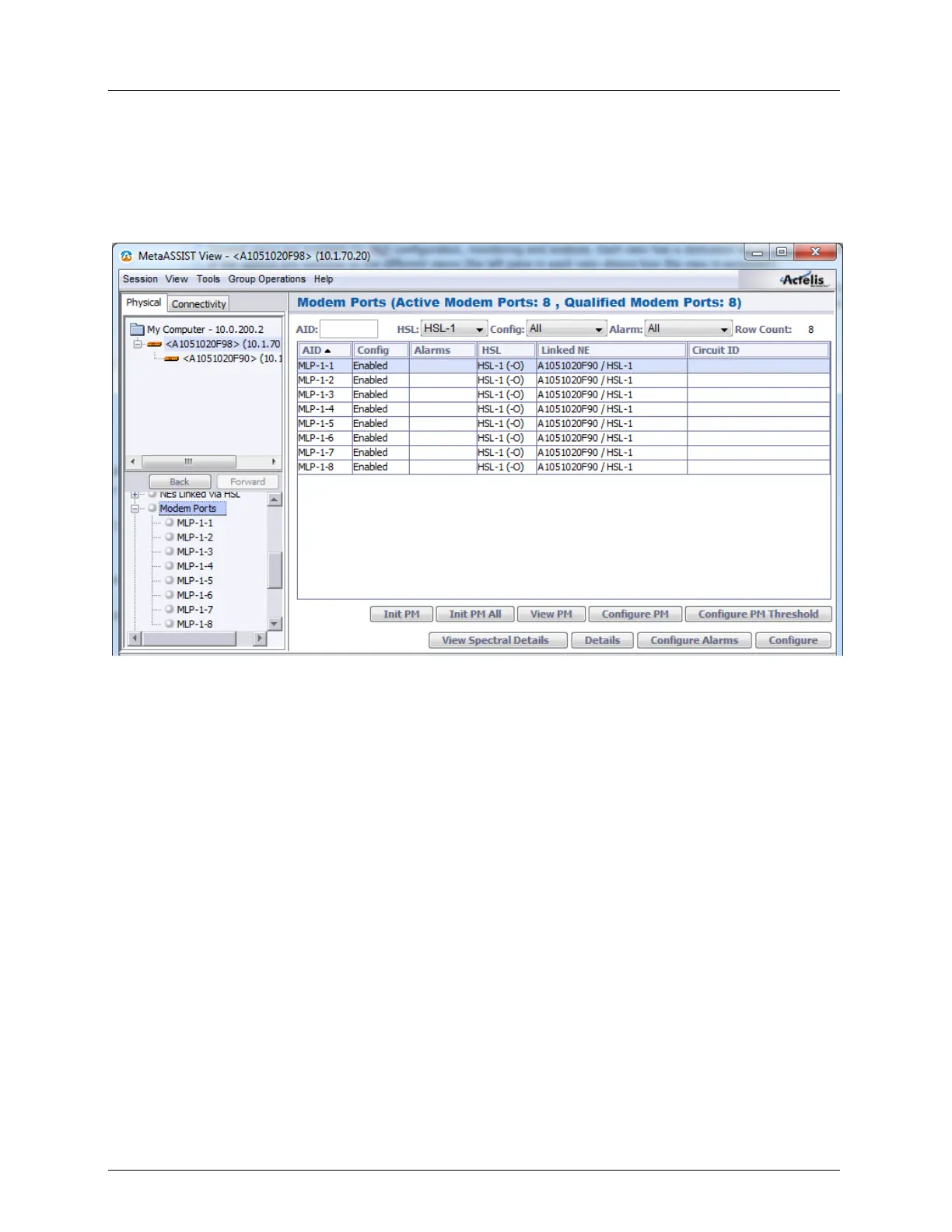 The table in the Modem Ports pane provides unique identification (Serial Number) of each