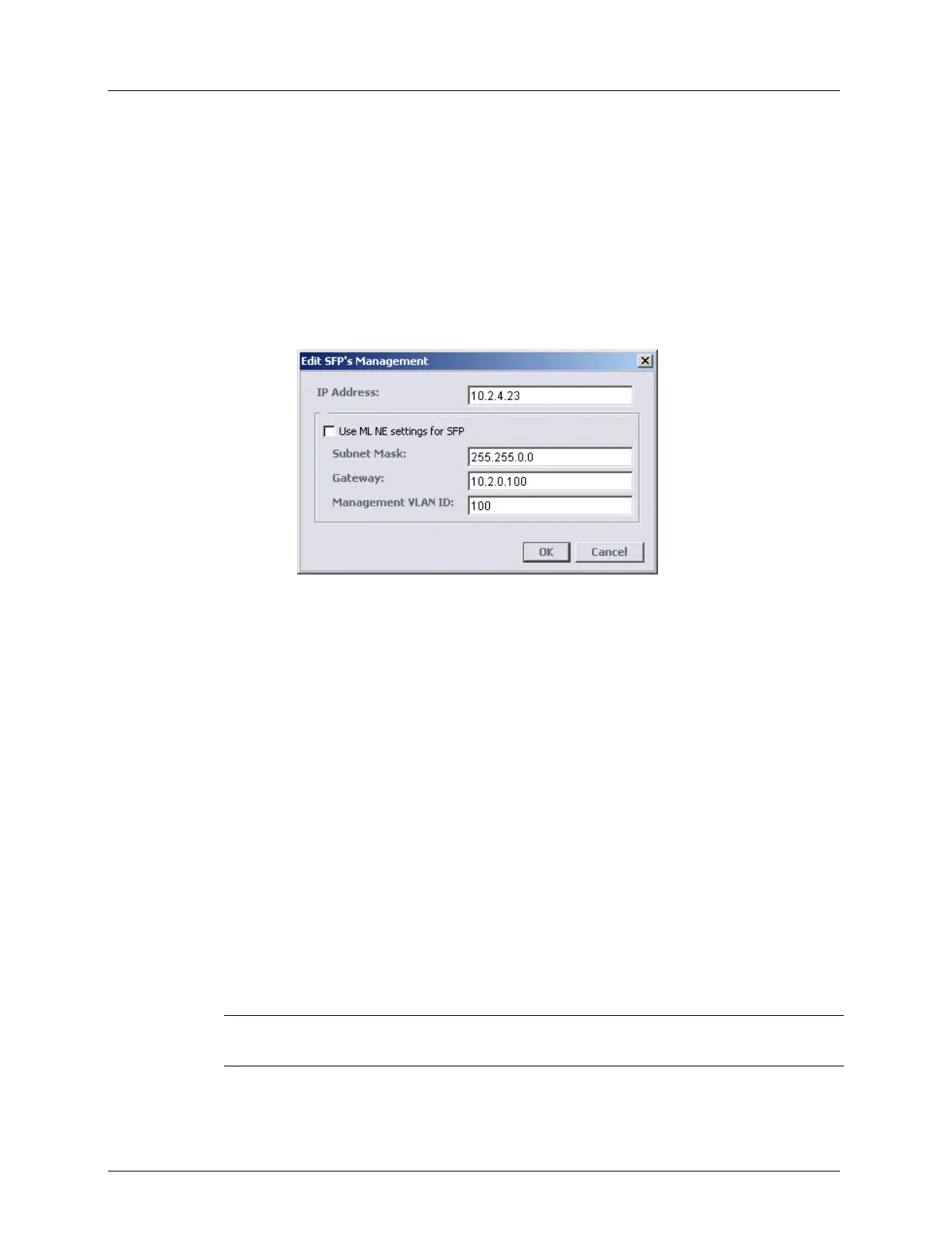 VLAN ID as specified in the above SFP dialog.