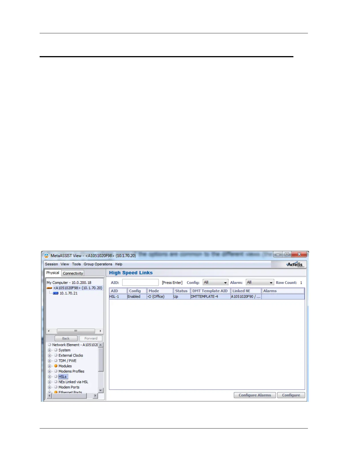 Configure Alarms (on page 13-10) - alarm configuration for the selected HSL