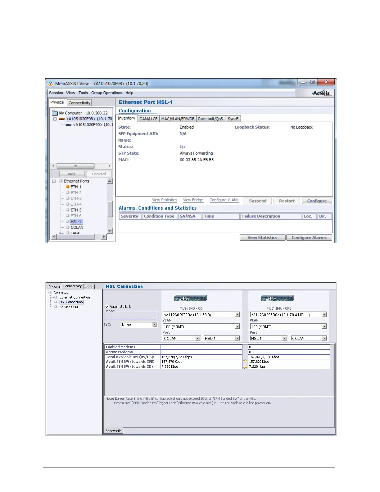 Ethernet Port HSL View - shows the Ethernet attributes of the HSL port and provides