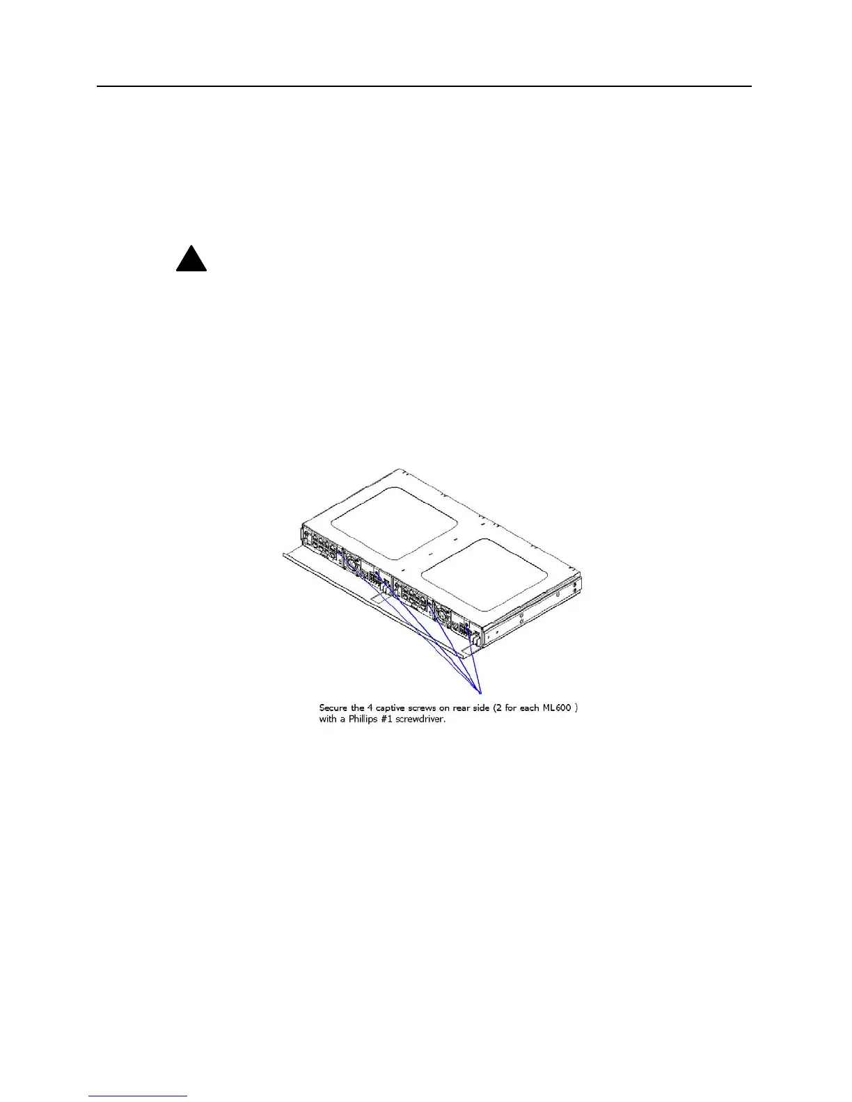 Insert the ML600 into the rack mount sleeve and secure the two captive screws with a