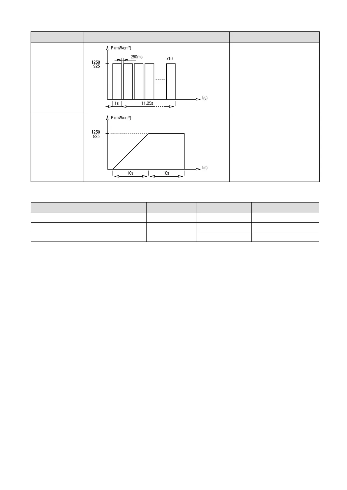 Waveform (nominal value, irradiance, duration) Average irradiance over time